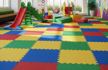 O piso emborrachado é indispensável e altamente recomendado para todos os tipos de áreas de lazer e recreação infantil: