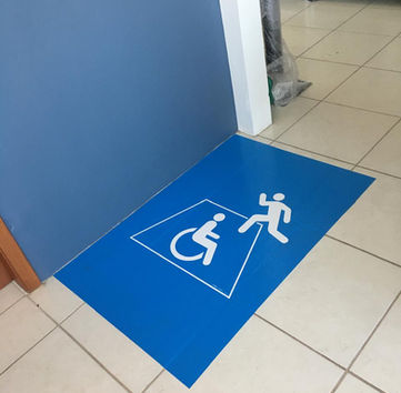 Cores contrastantes com o piso existente (amarelo, azul, cinza, preto, etc.) para garantir a percepção visual.